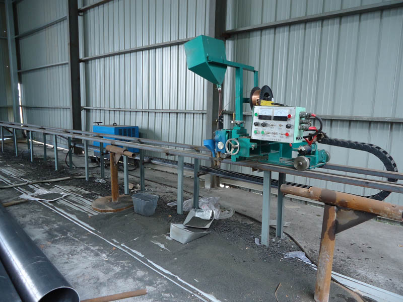 該設備利用埋弧焊接,不發(fā)光,焊接速度快,而且對于多邊形桿加上人工調節(jié),方便迅速。焊機電源為上海焊機總廠生產,焊縫均勻連續(xù)美觀,滲透強,一次成型,焊接效率高,速度1-3米/分鐘,是氣保焊的三倍。焊接成本低于氣體保護焊,是目前國內燈桿行業(yè)焊接速度快,效果好,價格低的設備。